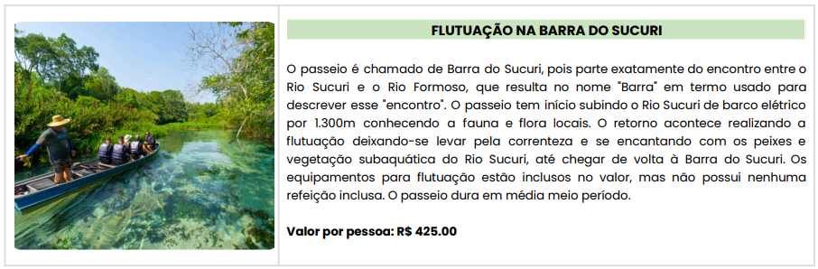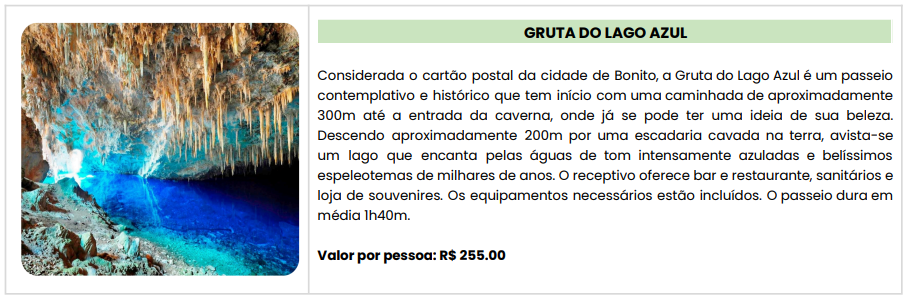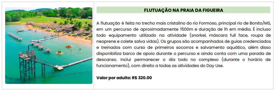- Passagem aérea LATAM: Porto Alegre / Bonito / Porto Alegre, com franquia de 1 mala despachada de 23 kg;