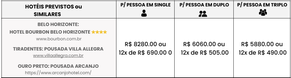 - Valores sujeitos a alteração conforme disponibilidade de hotel.