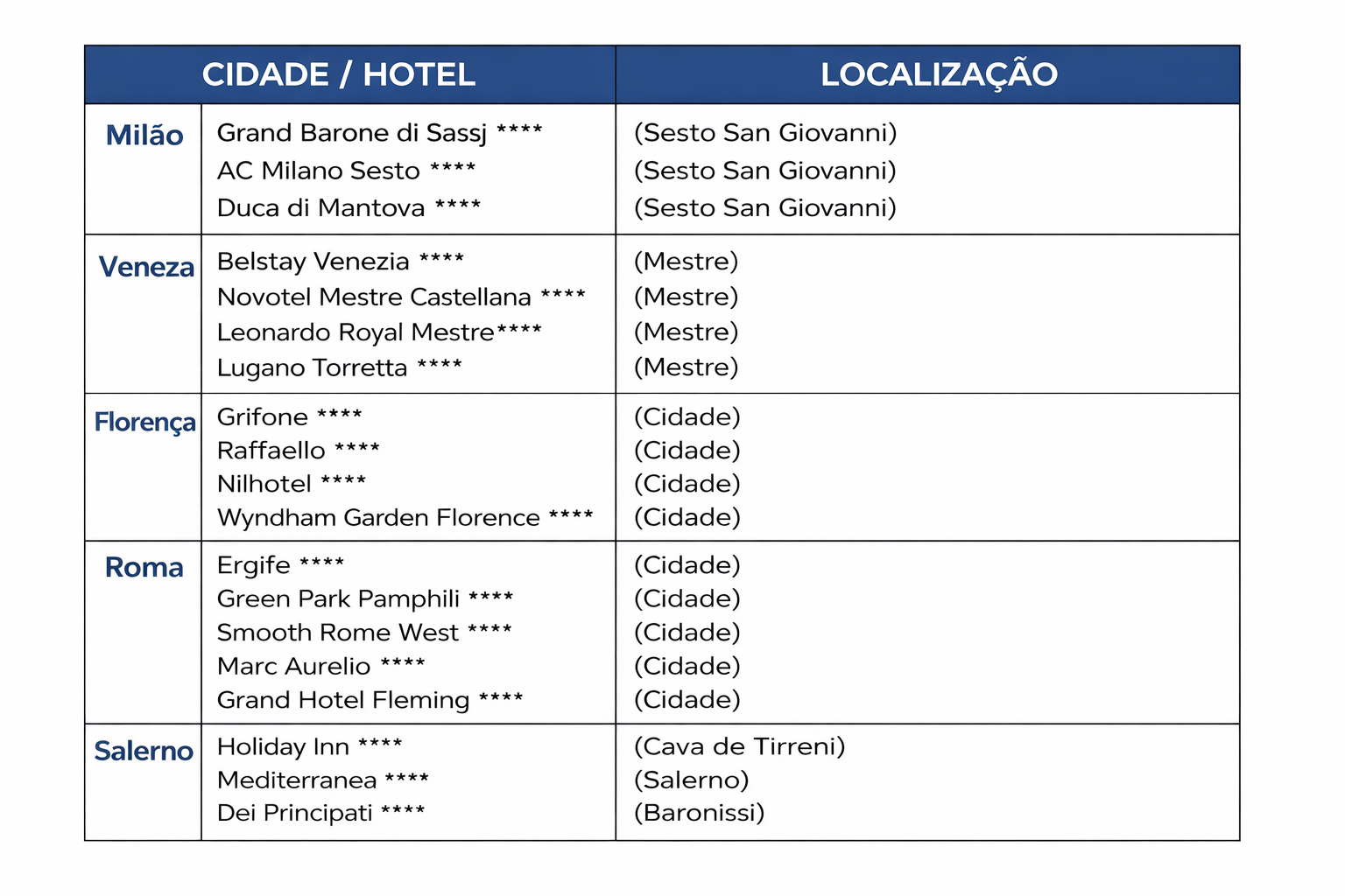 - Valores sujeitos a alteração conforme disponibilidade de hotel.