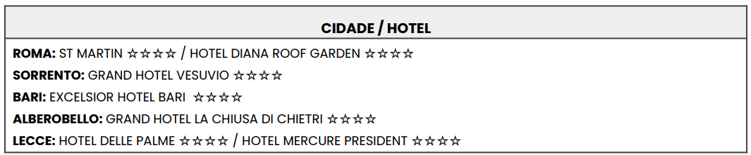 - Valores sujeitos a alteração conforme disponibilidade de hotel.