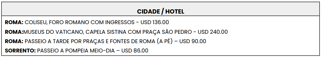 ☕︎ PASSEIOS OPCIONAIS