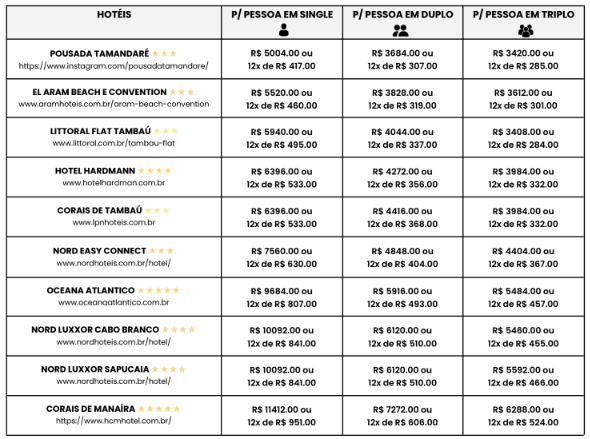 - Valores sujeitos a alteração conforme disponibilidade de hotel.