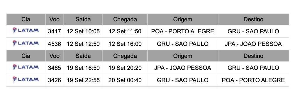 - Passagem aérea LATAM: Porto Alegre / João Pessoa / Porto Alegre, com franquia de bagagem de 23Kg;