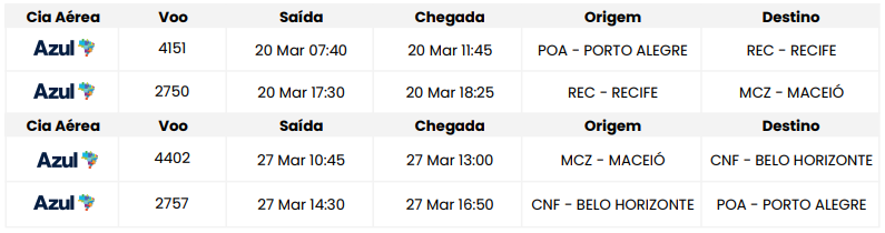 - Seguro Viagem nacional, com cobertura de R$30 mil para todo o período da viagem;