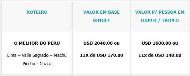 - Acrescentar USD 155.00 de taxas de embarque a serem pagas junto à entrada;