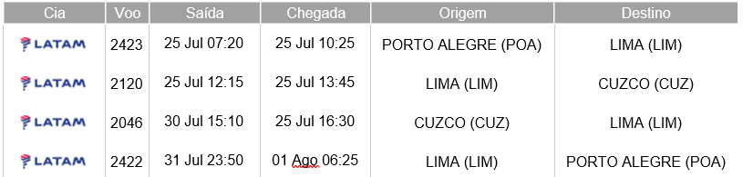 | CIDADE | VALE SAGRADO | CUSCO | LIMA |