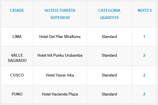 - 07 noites de hotel com café da manhã e taxas;