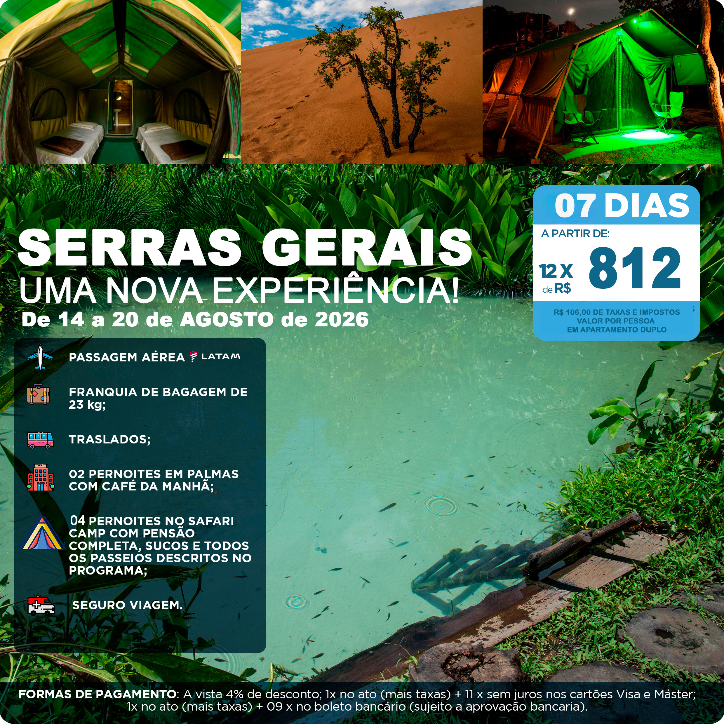 • 02 pernoites em Palmas (htl categoria turística) com café da manhã;